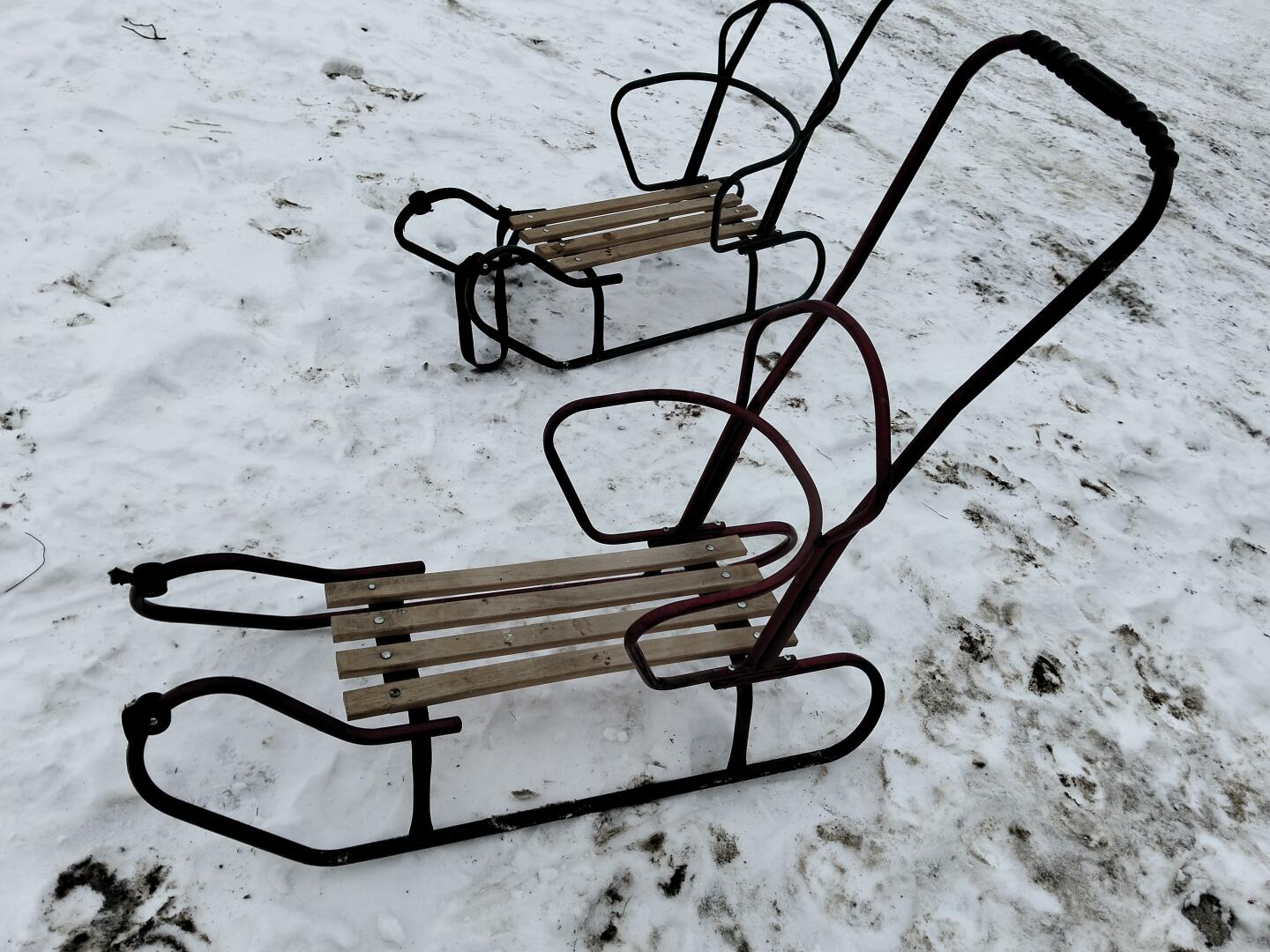 Sprzedam dwie pary sanek z oparciem z możliwością pchania stan sanek oceniam na dobry;