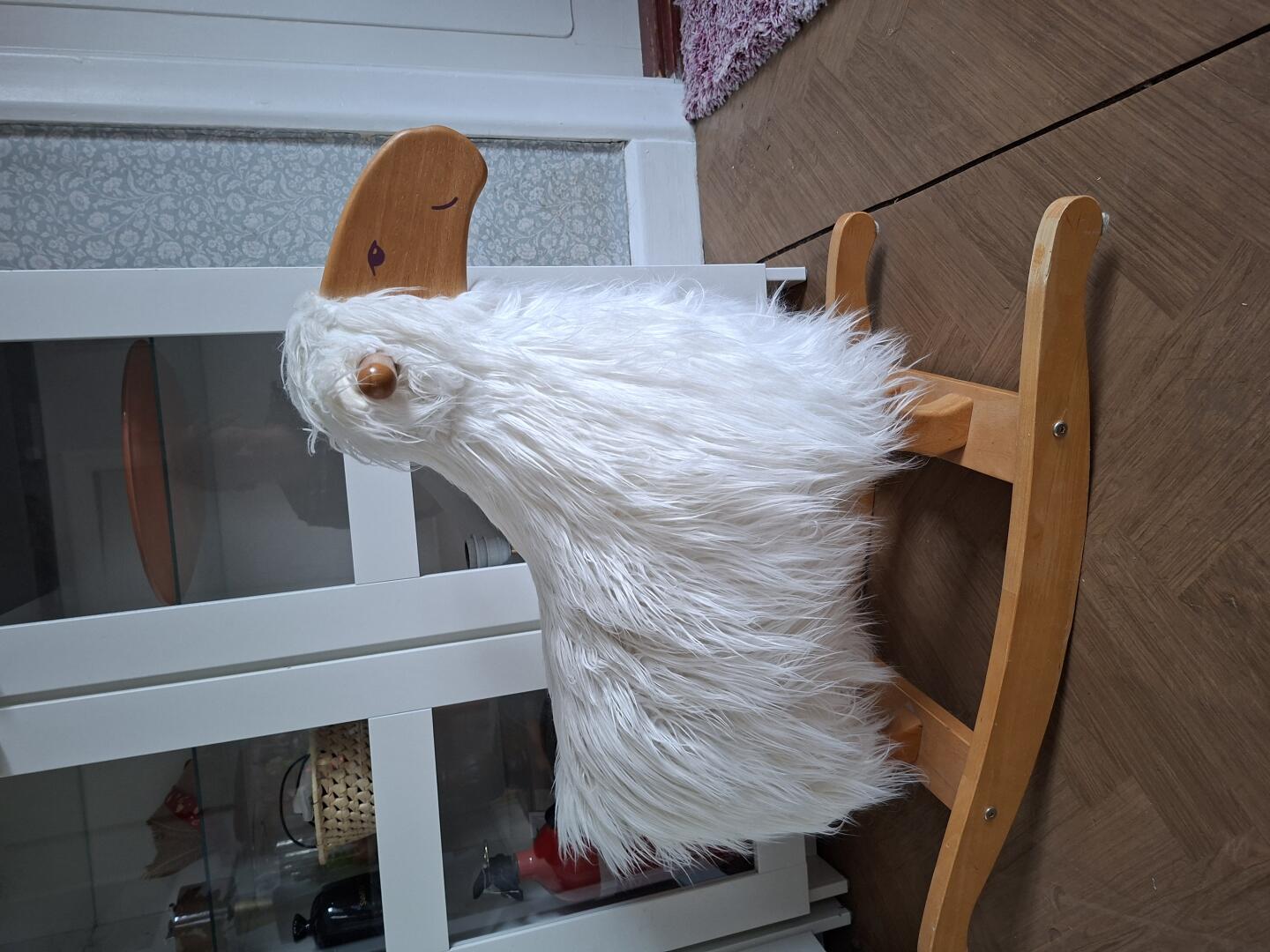 Sprzedam owieczka na biegunach 70 na 65cm stan b dobry,stabilna i wykonana jest z drewna a futerko odpinane,